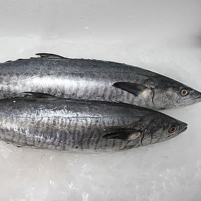 King Fish have a streamlined body, with a tapered head, and very small scales that cover the entire body except the pectoral fins. The color is iridescent bluish green on the back, lower sides and belly gray to silver, and the lateral line starts high near the gills and drops sharply below the second dorsal fin. The king Fish weights range from five to thirty pounds. The maximum size about 75 to 90 pounds, but in the marketplace the average weight is five to 20 pounds.