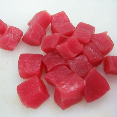 Tuna Saku is the finest part of the fish. Cut from the eye of the loin. This superior graded fish is ideal for Sashimi and Sushi rolls.Tuna CubesThe cubes of raw tuna look contemporary on the plate and the toasted sesame seeds enhance their flavor. Like cheese cubes, you could serve a whole tray of these at your next party
